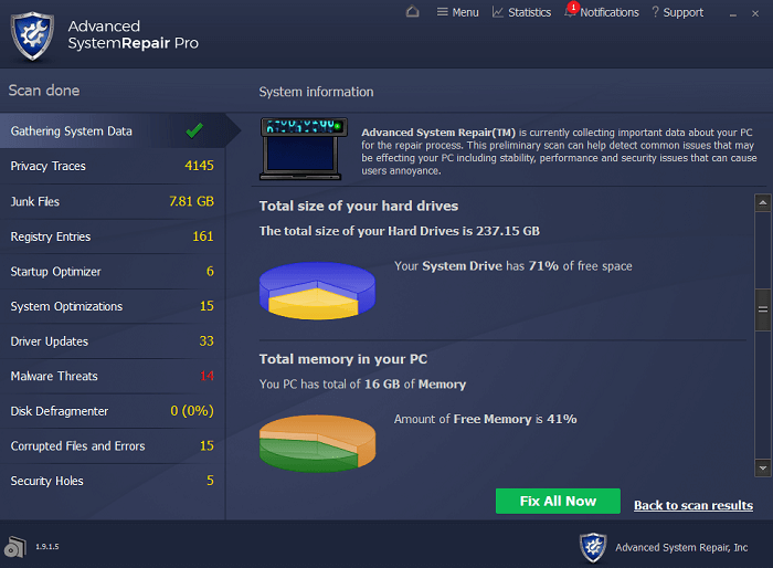 Advanced System Repair è progettato con la tecnologia avanzata in grado di scansionare, esaminare, il tuo computer in modo efficace e fornire risultati dettagliati.